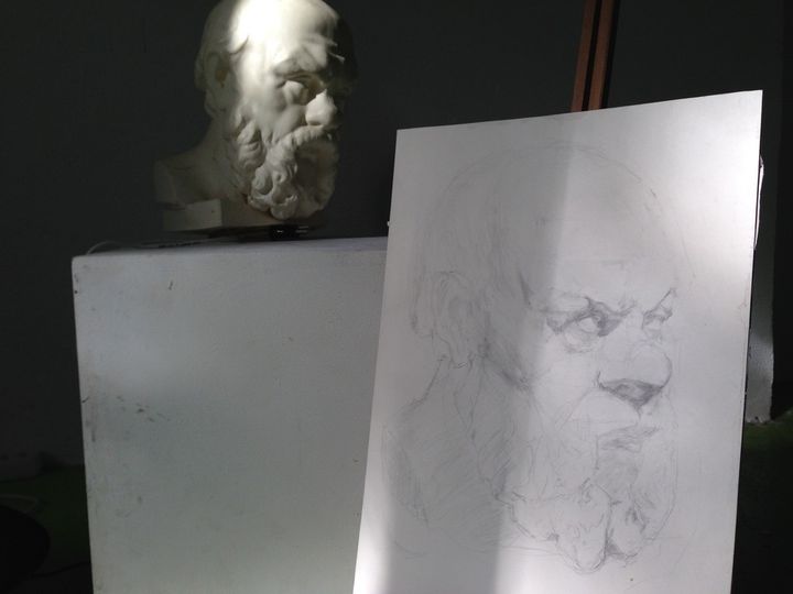 We will start the workshop by getting acquainted with composition and measuring proportions. Then we will learn how to build the shape of an object, and how to reveal its volume with tone graduation. We will learn how to think with a pencil and how to make an illusion of a 3D object on a 2D sheet of paper. Two hours are not enough to make a completely finished portrait with pencil (which in academy usually takes 40 hours), and this short workshop will give the participants an understanding of the tool’s main principles.